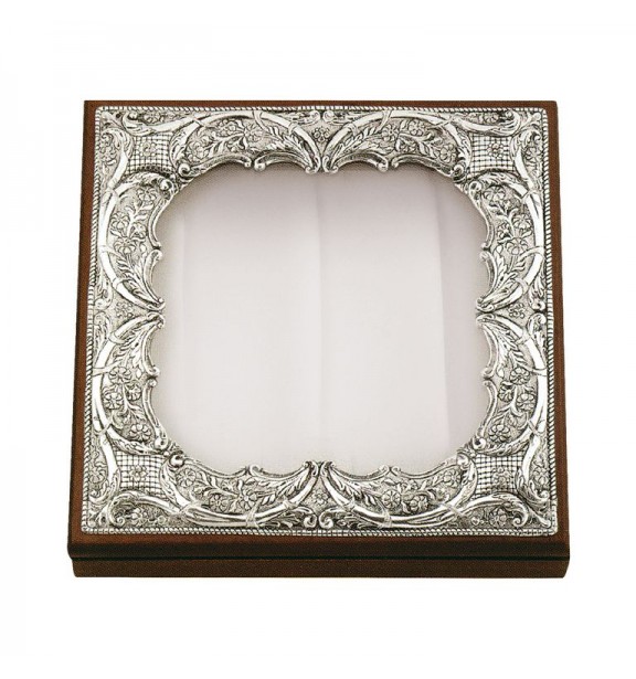 ΚΩΔ 920Γ ΣΤΕΦΑΝΟΘΗΚΗ ΤΕΤΡΑΓΩΝΗ ΔΙΑΣΤΑΣΗ 27 Χ 27 ΚΛΑΣΙΚΟ ΣΧΕΔΙΟ ΑΠΟ ΚΑΘΑΡΟ ΑΣΗΜΙ 925 ΣΕ ΜΑΣΙΦ ΦΥΣΙΚΟ ΞΥΛΟ