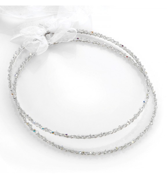 Χειροποίητα στέφανα γάμου επαργυρωμένα σε ασήμι 1000 βαθμών. Έχουν περάσει από ειδική επεξεργασία για να μην χάνουν τη λάμψη τους στον χρόνο. Αποτελούνται από μία επαργυρωμένη βέργα στην οποία περιπλέκονται Swarovski. Συνοδεύονται από δύο καρφίτσες για το πέτο του γαμπρού και του κουμπάρου. Παραδίδονται σε πολυτελές κουτί με σατέν επένδυση και πιστοποιητικό γνησιότητας.