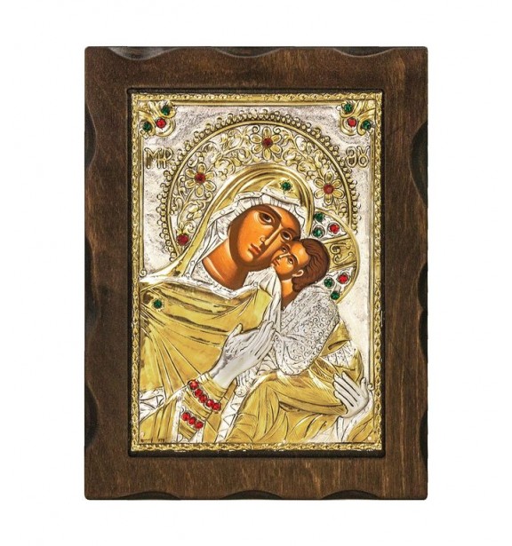 ΕΙΚΟΝΑ ΒΥΖΑΝΤΙΝΗΣ ΤΕΧΝΗΣ , ΥΨΗΛΗΣ ΠΟΙΟΤΗΤΑΣ  ΑΠΟ ΚΑΘΑΡΟ ΑΣΗΜΙ 950 , ΜΕ ΕΠΙΧΡΥΣΩΜΑΤΑ 24 ΚΑΡΑΤΙΩΝ ,ΔΙΑΚΟΣΜΗΜΕΝΗ ΜΕ ΕΥΡΩΠΑΙΚΑ ΚΡΥΣΤΑΛΛΑ ΚΟΡΥΦΑΙΑΣ ΠΟΙΟΤΗΤΑΣ .