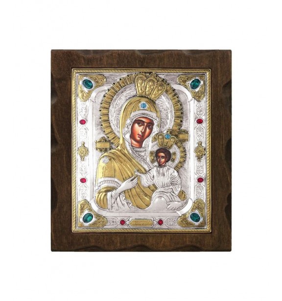 ΕΙΚΟΝΑ ΒΥΖΑΝΤΙΝΗΣ ΤΕΧΝΗΣ , ΥΨΗΛΗΣ ΠΟΙΟΤΗΤΑΣ ΑΠΟ ΚΑΘΑΡΟ ΑΣΗΜΙ 950 , ΜΕ ΕΠΙΧΡΥΣΩΜΑΤΑ 24 ΚΑΡΑΤΙΩΝ ,ΔΙΑΚΟΣΜΗΜΕΝΗ ΜΕ ΕΥΡΩΠΑΙΚΑ ΚΡΥΣΤΑΛΛΑ ΚΟΡΥΦΑΙΑΣ ΠΟΙΟΤΗΤΑΣ .